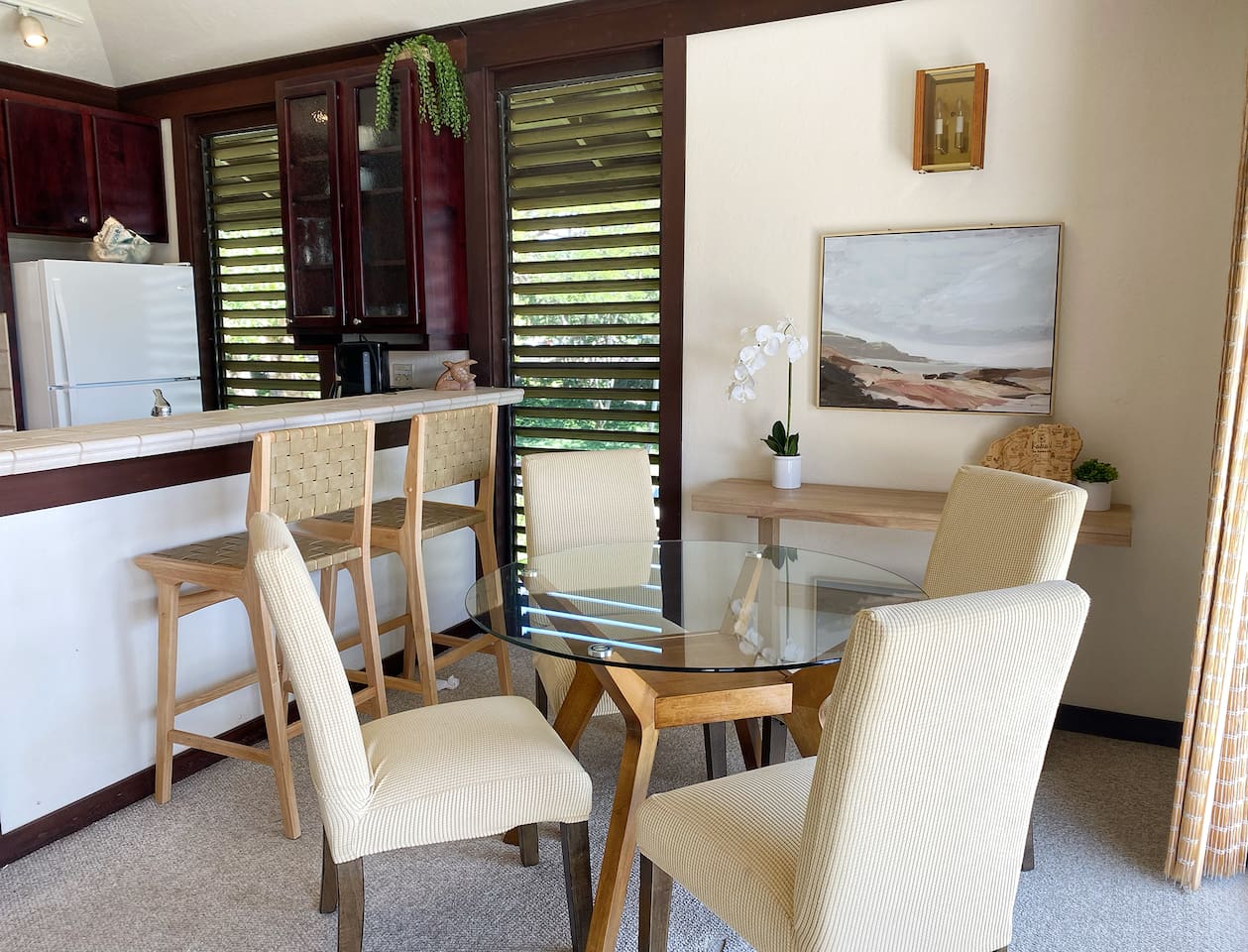 NEWLY UPDATED!!! - With all new stainless steel appliances! New refrigerator, electric range and dishwasher. Photos coming soon! - This lovely Kiahuna Plantation top floor condo has vaulted ceilings, AC, and everything you need to enjoy the island. With the beach a short walk through the gardens, this condo is an ideal respite to relax between outings to the beach, hikes, and all the amazing sights and opportunities Kauai has to offer.