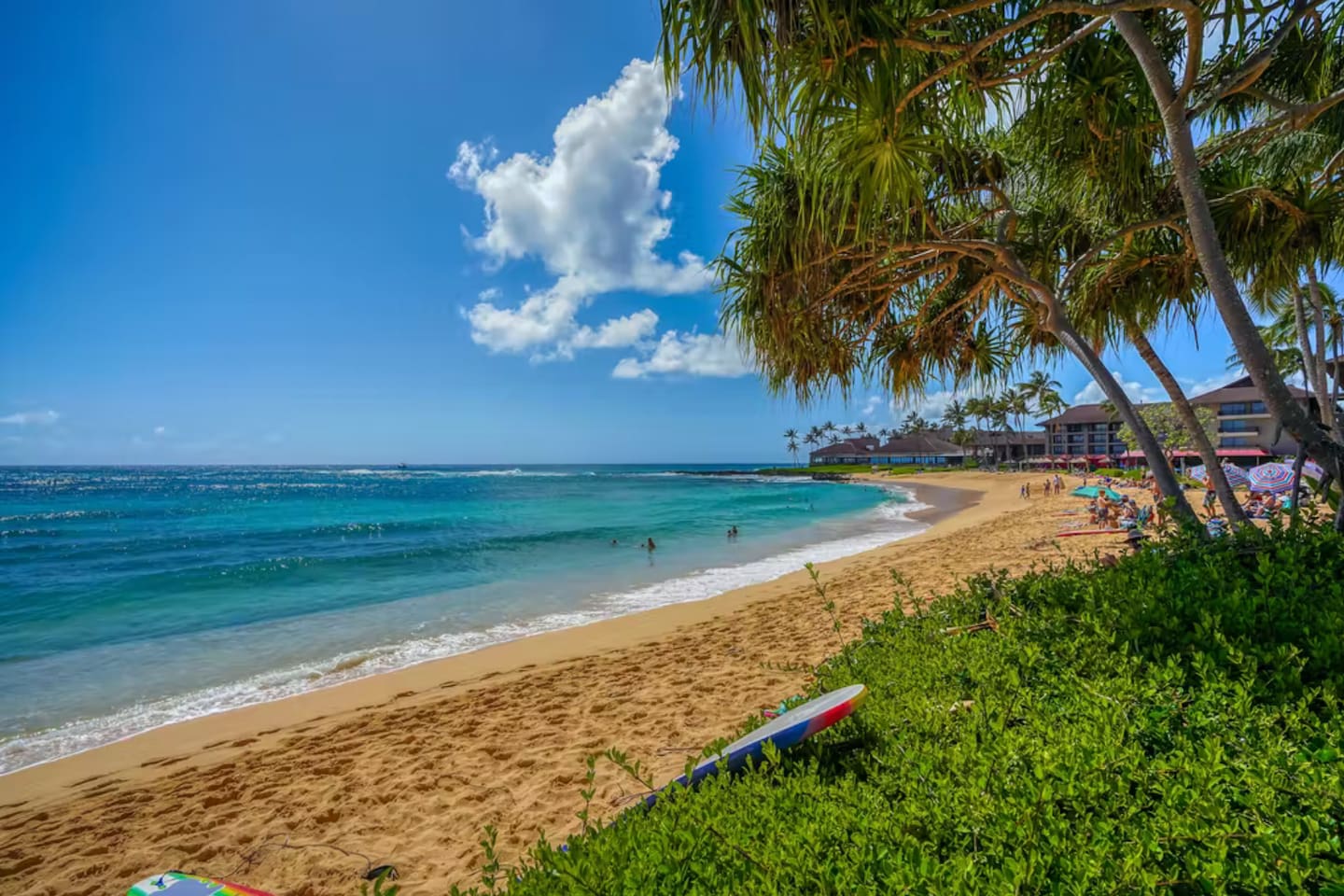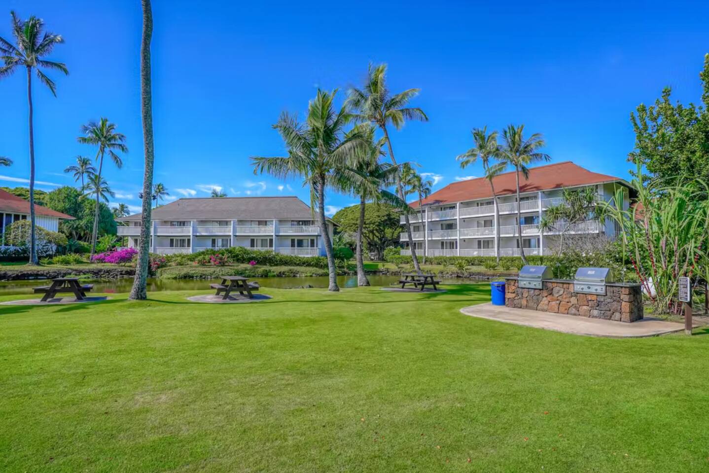 Very few properties in Kauai have a rich history that dates back to Hawaii’s sugar plantation days. This condo sits on 35 acres of lush land with exotic vegetation, fronting an award-winning beach. • Towels and beach chairs are available to guests at the kiosk at the beach • On site 24 property management and maintenance should you need anything please contact the desk at Castle Resorts & Hotels Kiahuna Plantation • BBQs located directly to the side of our building • Credit card operated onsite guest laundry available • Just directly across the road is the Poipu Athletic Center, which has a pool, slide, hot tub, full gym, tennis courts, pickle ball, basketball courts, lockers, showers, and the Cabana Bar and Restaurant. Membership is included in your condo rental • Also just across the road, is the Poipu Shopping Village, which has great restaurants, shopping, and coffee shops • Only 25 minutes from the Lihue Airport